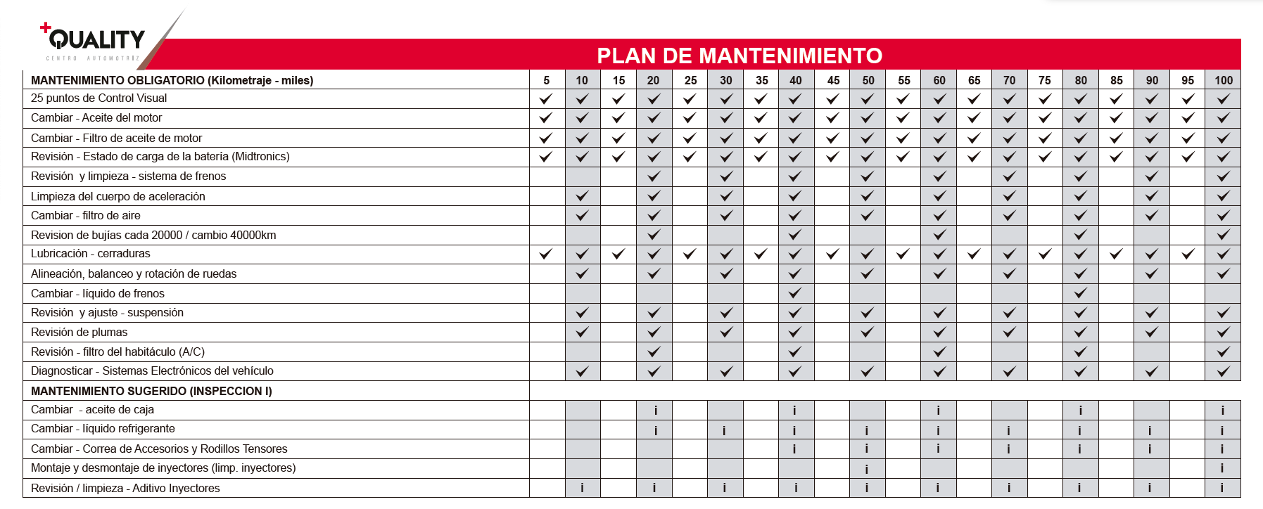 Valores no incluye repuestos de piezas de desgaste (frenos, embragues, amortiguadores ...)
